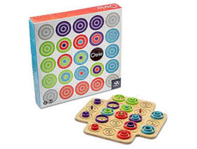 Otrio is a tic tac toe board game with triple the complexity and visual appeal of the traditional game. The board’s nine squares each have three concentric circles, and players get different-sized circular pieces that they can play inside any square. This creates multiple ways to win: getting three of the same-sized pieces in a row, three different-sized pieces in a row in ascending or descending order, or three concentric pieces in the same space. With added layers of strategy, this game engages its players in active offense and defense.