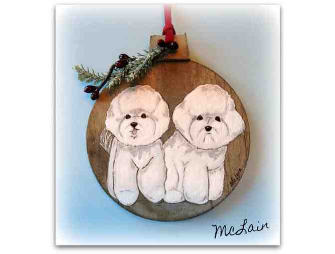 The cutest Bichon duo ever! Hand painted and sealed in high quality acrylics. Hung with silk ribbon. Ready to bring an extra sparkle to your tree!