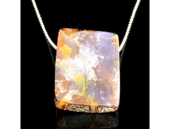 9.35 CT Freeform Cut Boulder Opal Pendant With Chain. Estimated value $400 - $800