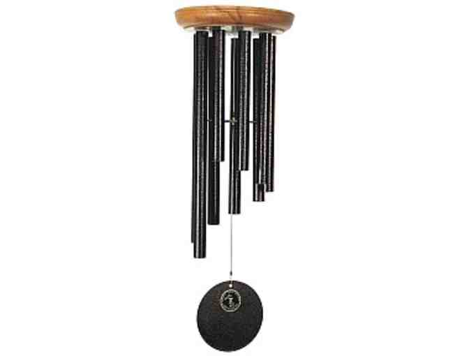 Jacob's Traditional Waterfall Wind Chimes. (Dimensions: 24" tall, 6 .5" wide. Longest pipe is 12.75".) The Waterfall wind chime has nine steel pipes that combine to create a playful, waterfall effect. These magically beautiful sounding traditional windchimes are hand tuned and assembled with only the finest weatherproof materials. The pipes and other metal parts are finished with a rich baked on copper/black coating. Strung with stainless steel wire from a weather resistant wood top. Lifetime warranty.