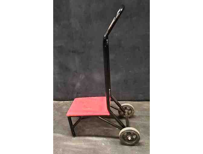 A wheeled dolly designed to move stacks of stacked banquet chairs. Very gently used.