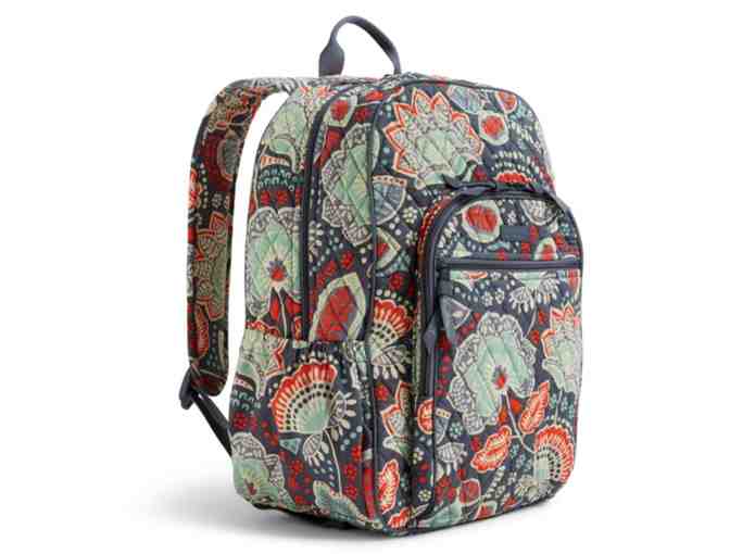 Exterior features two zip pockets (one with interior organizational pockets). Two side pockets. Main compartment features two slip pockets, two pen slips and an ID window. Includes a specially designed grommet for headphones. Back panel and straps are padded. Zip closure. Dimensions 12 inches w x 16 inches h x 6.5 inches d with 2.75 inch handle drop; 29.75 inch adjustable straps