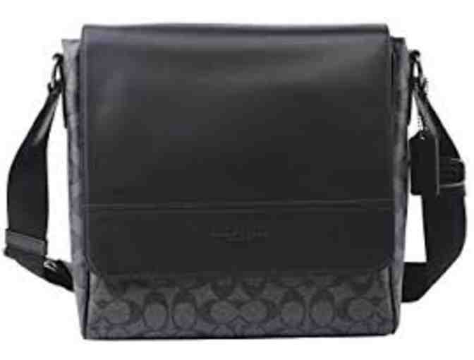 Coach Houston Map Leather Crossbody Messenger Shoulder Bag (Black Leather)