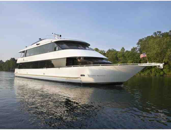 “Main Street Lake Cruises’ Landing Princess” offers the only luxury Branson lake cruise on beautiful Lake Taneycomo! This captivating one-and-a-half hour dinner cruise takes place aboard a 100-foot yacht, complete with a well-stocked cash bar, tastefully decorated dining and reception areas, two full-sized and well-appointed restrooms, and glass-enclosed decks perfect for viewing the passing scenery. Speaking of scenery, the shores of the somewhat narrow, river-like lake boast some areas heavy with pretty trees, other areas resplendent with the colorful bluffs of the Ozarks’ hills, and plenty of birds, fish, fox, squirrels, and other critters of Mother Nature in their natural habitats. Of all these incredible creatures, everyone’s favorite sighting is, of course, the majestic bald eagles that nest along the shoreline of Lake Taneycomo.