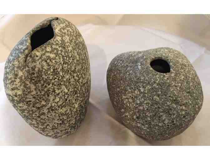 Two Small Rock Pots. They are hand crafted made out of ceramic and they have a beautiful rock design. Use these art pieces as some unique house decor.
