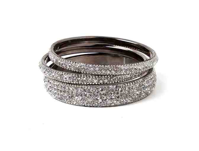 The Glam Bangle Set includes a 3-piece, mix-and-match set of beautiful gold tone-brass bracelets encrusted with Austrian crystals for a serious dose of sparkle. Whether worn within a stack or one at a time, this set lends easy glamour to every outfit already in your wardrobe.