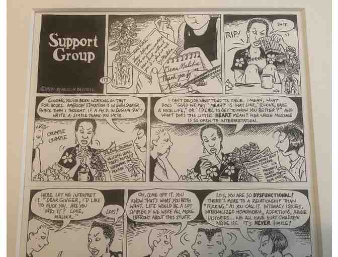 Bid now for the original artwork from Dykes To Watch Out For #113, "Support Group," autographed by Alison Bechdel