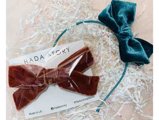 Snickerdoodle Velvet Bow and Winter Green Velvet Headband by Hada Story