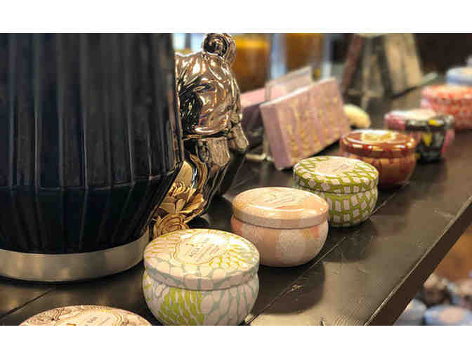Letter Press Chocolates, John Kelly Chocolates, and Whimsy Chocolates. Niven Candles, Joshua Tree Candles, Aqua de Soi Candles, and Tyler Candles. Pré de Provence Soaps, Niven Lotions, and Erbaviva organic skincare. Melissa and Doug toys, Elegant Baby, Kobi Yamada books. Bald Guy Greetings, Studio Oh journals and bottles. Purses, scarves, and unique men's gifts!