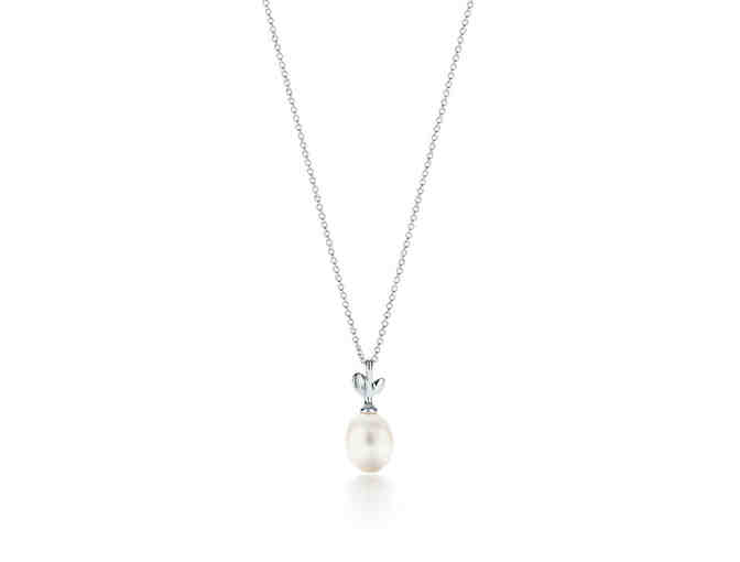 Tiffany Paloma Picasso Olive Leaf Pendant in sterling silver with a cultured pearl.