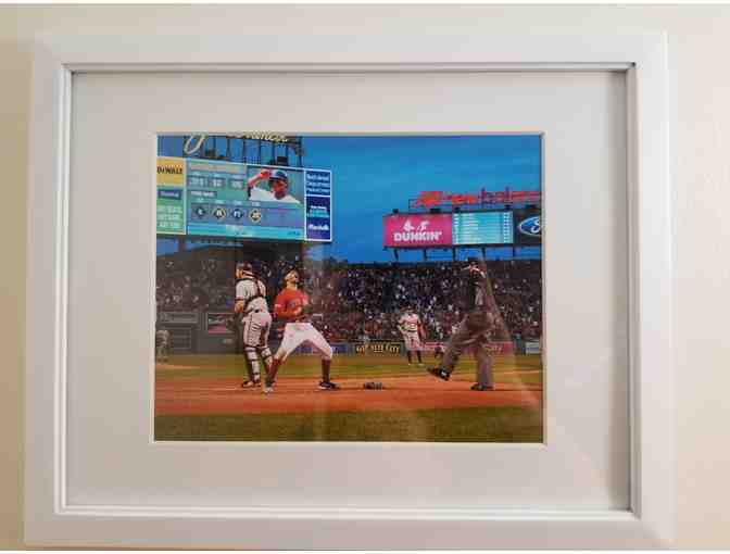 You are bidding on a photo from the September 29, 2019 Boston Red Sox versus Baltimore Orioles game at Fenway Park. This was the final play of the 2019 season. Mookie Betts celebrates after scoring the winning run. This rare photograph is the only known photograph from this angle and is included in the Boston Red Sox permanent archives. The photographer is Erica Denhoff, granddaughter of Meeting Street co-founder, Dr. Eric Denhoff.