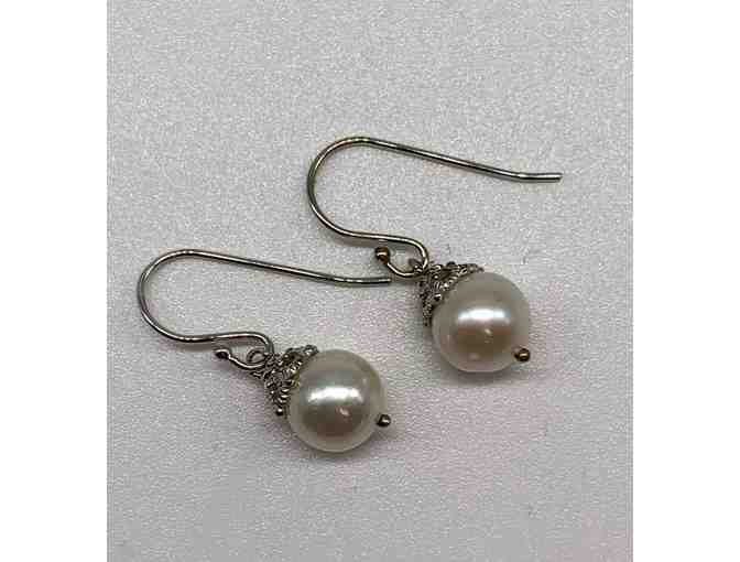 Judith Ripka 1" Sterling Silver pearl drop earrings with french wire closure.