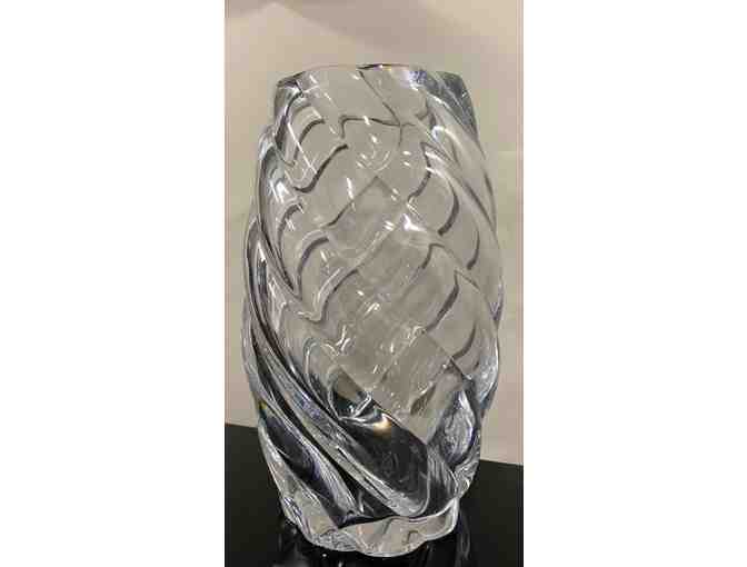 Baccarat crystal swirl vase. Used with some chips at the base.