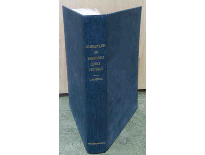 A Commentary on Emerson's Early Lectures (1833-1836) with an Index-Concordance. By Kenneth Walter Cameron. Transcendental Books, 1962. 212 leaves. Hardcover book with dark green binding. Condition: bottom edge of binding has average wear; top edge of book block has some soiling; front cover has a small soil mark; pages are clean and spine is good. One of only 75 copies printed. Designed "to assist those who are attempting a close reading of any of Emerson's works." Reviews the early lectures first, and then consists of detailed notes for each one. A unique resource.