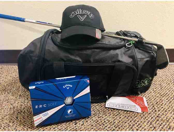 Package includes a Callaway JAWS Tour Grey MD5 wedge 60 10S (right handed), a dozen ERC Soft Golf Balls, a Callaway Heritage Twill Cap, a Oggio Endurance 2XL gym bag, and a Callaway Players Towel.