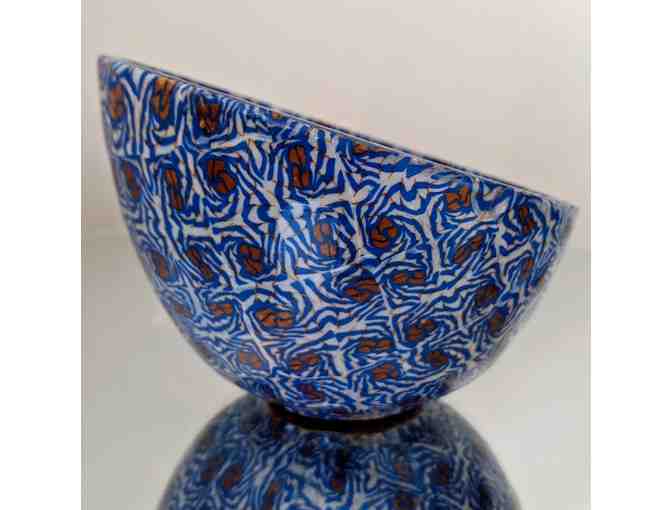 One of a kind, handcrafted polymer clay on glass plate and bowl set.