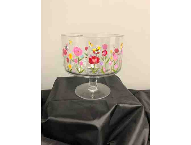 This spring fluted hand painted bowl with flowers and butterflies will be a lovely addition for your home.