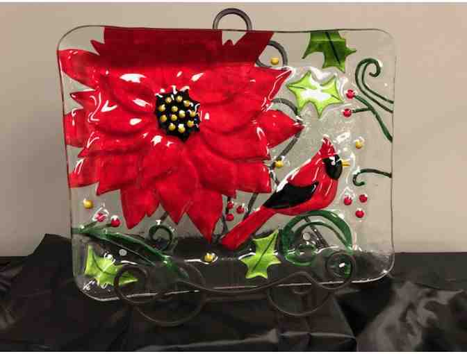 A lovely Cardinal & Poinsettia Platter, "14 x 11".