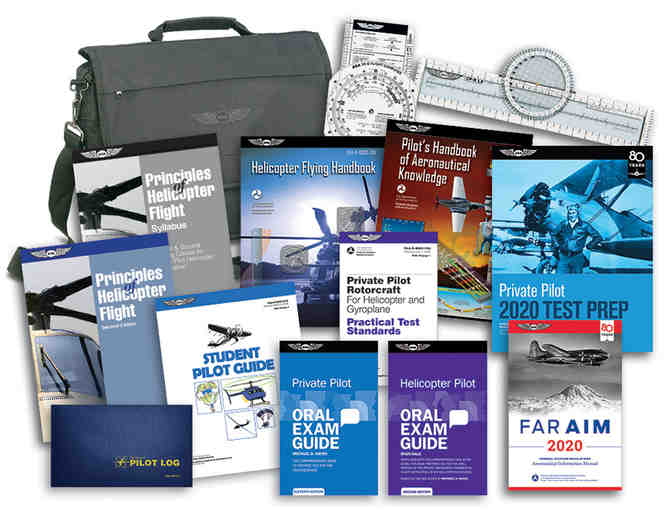 This Helicopter Kit ensures FAA regulatory requirements are met, and is the perfect training solution for instructors and students. Includes: Principles of Helicopter Flight and FAA Helicopter Flying Handbook as the primary textbooks, an ASA 2020 FAR/AIM, 2020 Private Pilot Test Prep, Private Pilot Rotorcraft Practical Test Standards, Private Oral Exam Guide, and Helicopter Oral Exam Guide, E6-B flight computer, Ultimate Rotating Plotter for flight planning, and a Standard Pilot Logbook for keeping track of flight time.