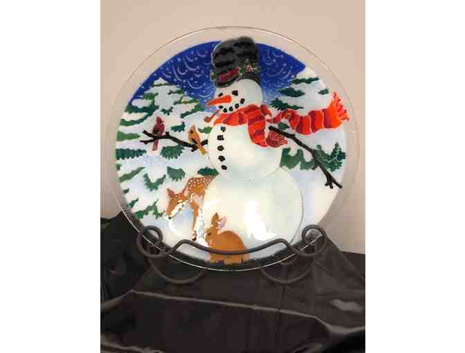 Enjoy this Peggy Karr fused glass Snowman bowl, it is size arge, and very beautiful.