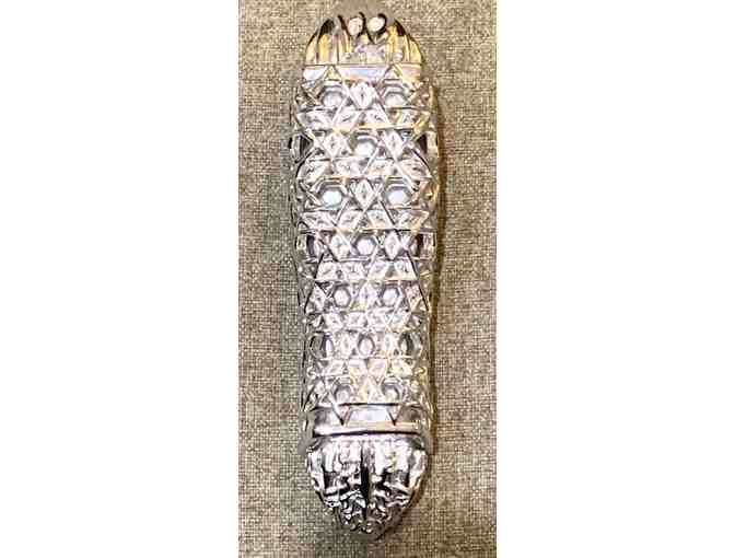Gorgeous silver mezuzah with scroll inside.