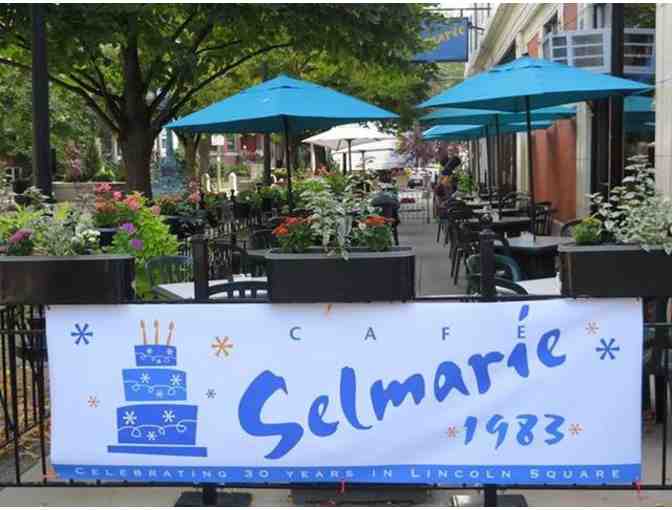 Enjoy a $25 gift certificate for food and drinks at the delicous Cafe Selmarie located in Lincoln Square. Cafe Selmarie focuses on fine European-style pastries, an eclectic menu of gourmet food, espresso, coffee, beer and wine. Have your meal in the lovely dining area or on the charming outdoor patio (weather permitting).