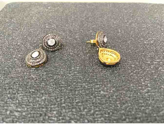 Pair of custom cast & assembled Anodized Silver Diamond earrings w/ yellow Gold accents. 1.04 ct.