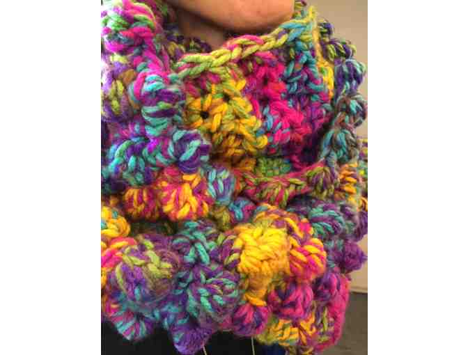 This is a beautiful hand knit cowl that can be worn long or doubled up.