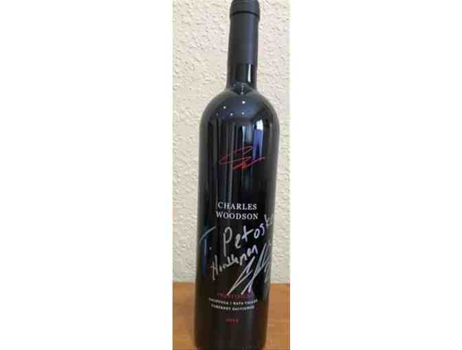 Inscribed with "To Petoskey Northmen" and signed by Charles Woodson is this 2014 Bottle of "Twentyfour" Cabernet Sauvignon donated by Kim Wrobleski.