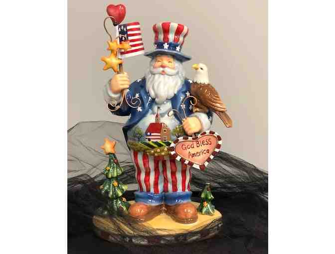 "God Bless America", a ceramic Patriotic Santa for your collection.