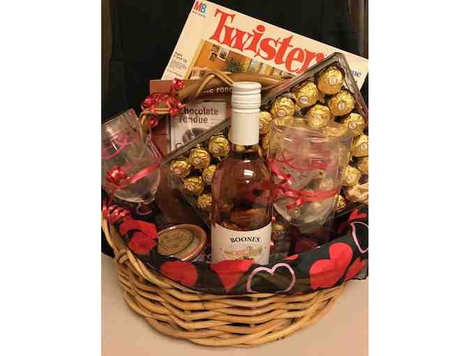 This basket of love has everything you need to enjoy a date night with your partner. From wine and chocolates to fondue and twister, this basket full of goodies promises to be a good time.