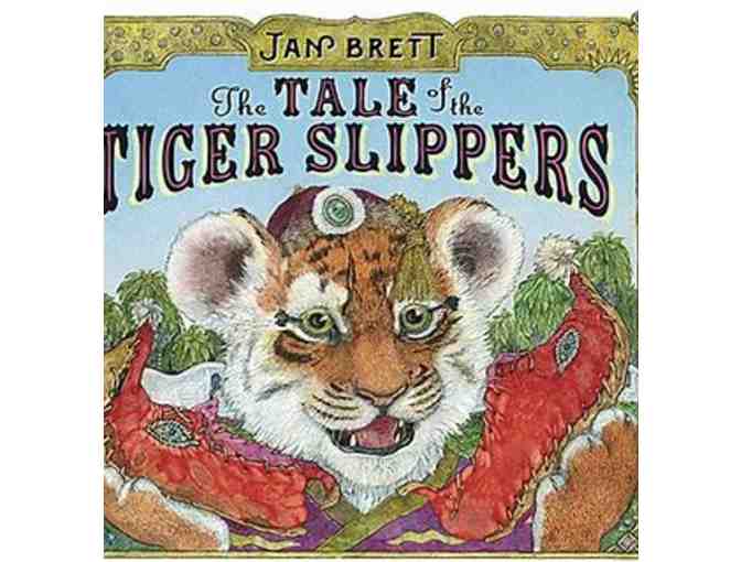This item is for a signed poster by Jan Brett of her most recent book, "The Tale of Tiger Slippers."