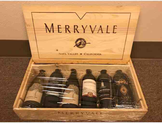 Enjoy a variety of wines straight from Napa Valley displayed in a hand crafted and wood burnt Merryvale wooden display.