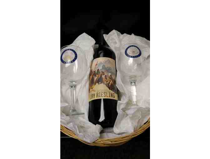 Enjoy a sip of this Walla Walla Valley Dry Riesling from the Jackson Hole Winery out of these unique United States Senate wine glasses.