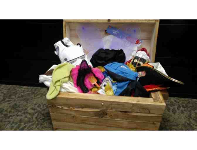 A bounty of dress up clothes and accessories can be found in this hand crafted treasure chest made of blue pine.