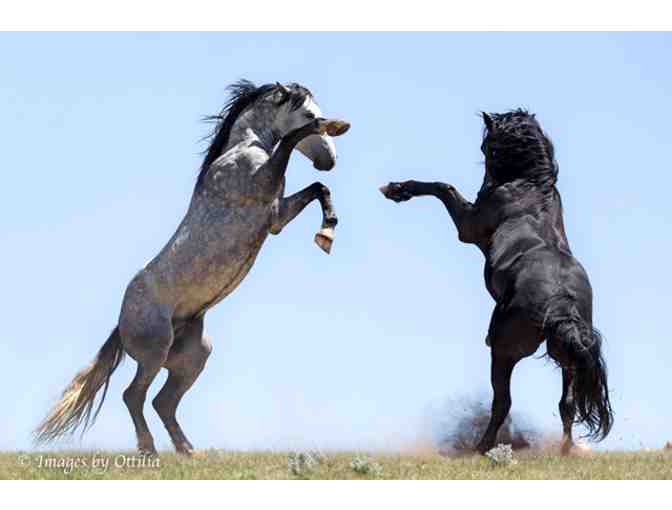 Taken at Salt Wells Creek HMA, this gray band stallion defends his mares from a bachelor stallion.