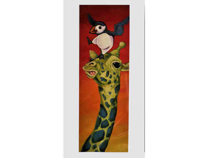 Art Print by Courtney Kelly, Giraffe and Dancing Puffin, 9" x 18", unframed