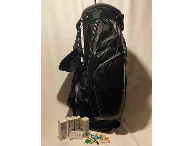 Hit the links with this golf bag, 12 Titleist balls, tees and a certificate for four players to play a round of 9 holes at Door Creek Golf Course (with cart).