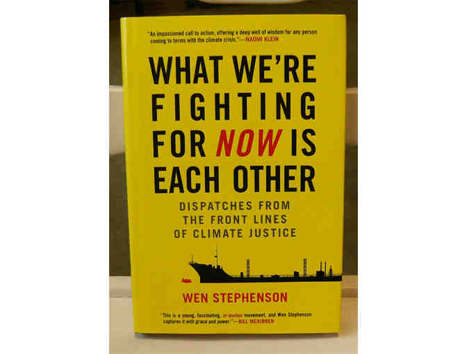 What We're Fighting For NOW Is Each Other, by Wen Stephenson. Beacon Press, 2015. Hardcover, 239 pp. A slightly used copy in great shape. Offers an up-close, on-the-ground look at some of the remarkable and courageous people who have laid everything on the line to build and inspire the fast-growing movement for climate justice in America. Argues that the movement must b less like environmentalism as we know it and more like the great human-rights and social-justice struggles of the nineteenth and twentieth centuries, from abolitionism to civil rights -- a struggle for human solidarity.