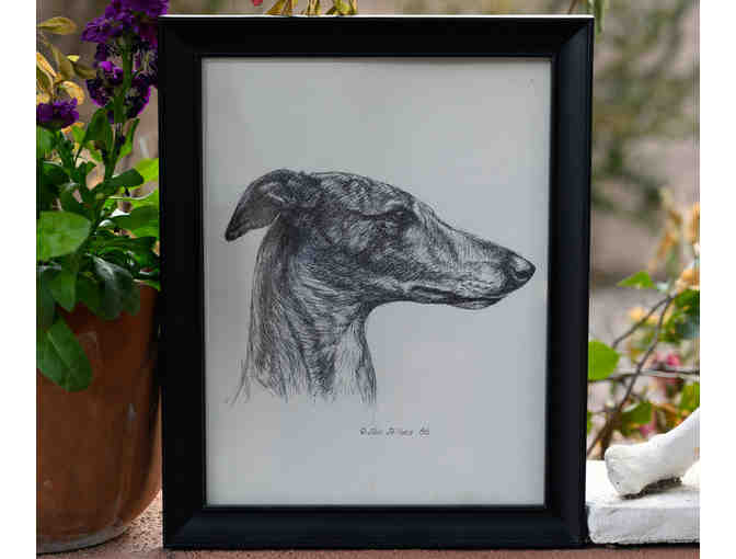 Item is presented behind glass, no matt, black plastic frame, and pressboard backing. It was donated to AGR from a private collection.