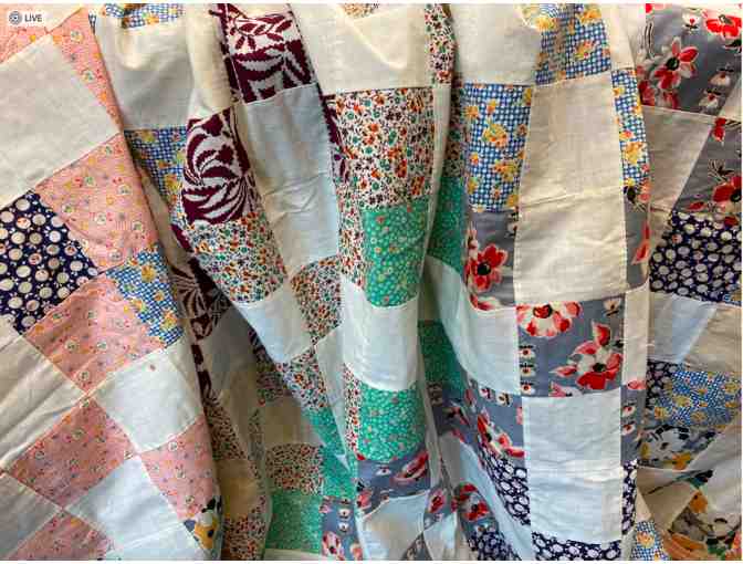 Here is a lovely machine-sewn, pieced quilt top that measures 74" by 82". It is aching to be made into a quilt. The fabrics are cheerful and extraordinary, and are reminiscent of summer dresses of yesteryear. The fabrics are all cotton