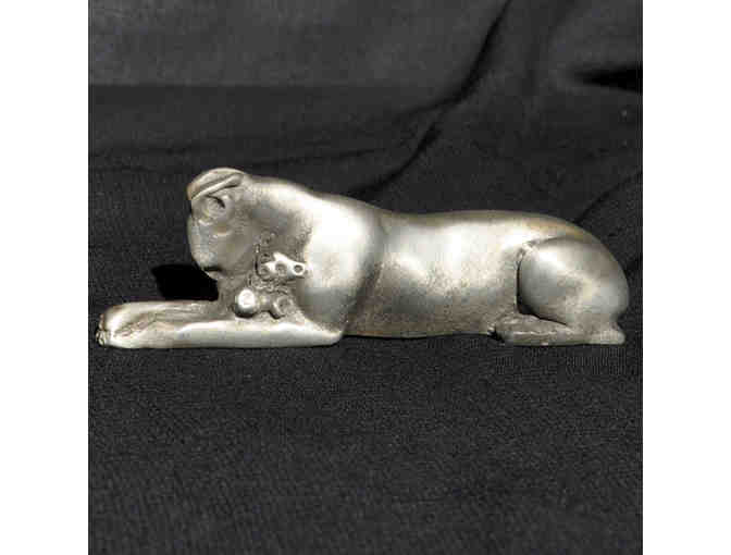 Solid, lead-free pewter, measuring 3 ½” long and 1” high. Made in the USA.