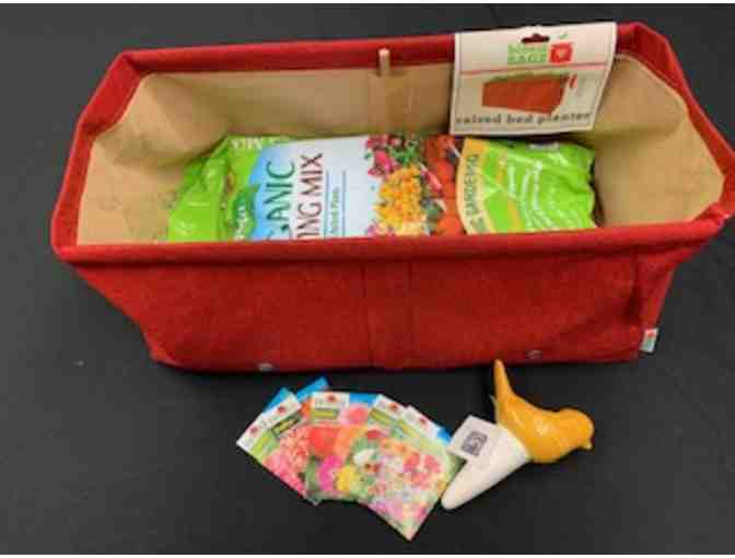 Itching for Spring? Enjoy this beautiful gardening package for either in home or outdoors. The canvas planter box is not only beautiful but easy to pick up and move. Complete with soil, flower seeds, and a fun yellow bird terra cotta watering tool.
