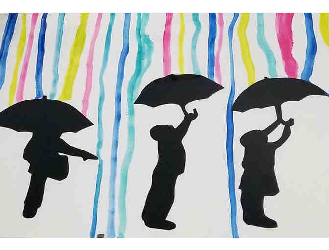 For those days when you feel like singin' in the rain, the children in Room 8 decorated silhouette portraits of them in the "rain." Also included is a lovely clear umbrella to complement the project.