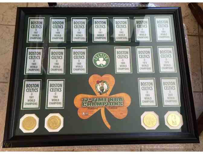 Celebrate your C's! Boston Celtics 17-Time NBA Champions Commemorative Collectible Plaque Limited edition, hand numbered collectible Commemorating the Boston Celtics 17 NBA titles. Framed Size: 22” x 18”