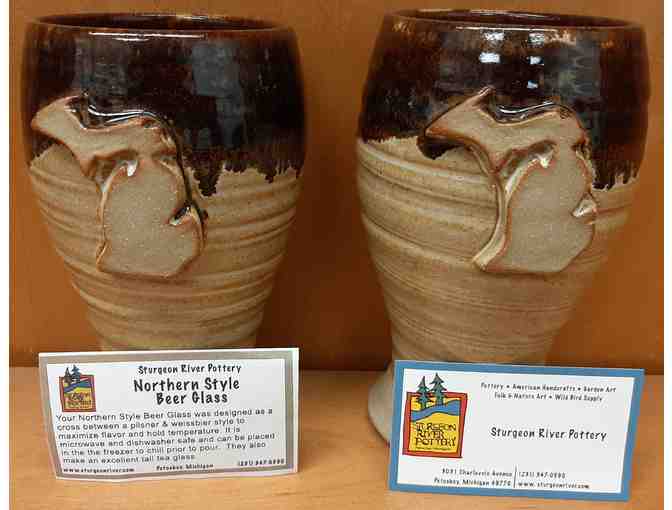 2 Mitten Pottery Beer Glasses donated by Sturgeon River Pottery