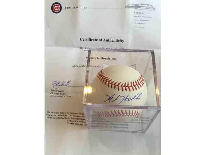 This authentic baseball is autographed by none other than ace Chicago Cubs pitcher #28 Kyle Hendricks. Kyle is a World Series Champion and 2016 World Series Game 7 starter. Nicknamed "The Professor," Hendricks is now one of the Cubs' most consistent pitchers. Get your hands on a piece of sports memorabilia from this right hander while you still have a chance.