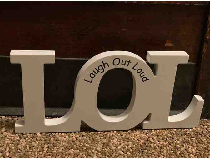 "LOL, Laugh Out Loud". A small piece of decor to add humor to any home.