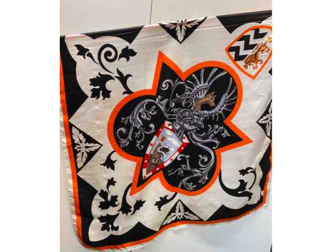 Every summer, there are two horse races (palio) in Siena. The neighborhoods (contrada) of Siena compete against one another, and represent with the flag of their neighborhood. This is the flag of Lupa, the She Wolf.