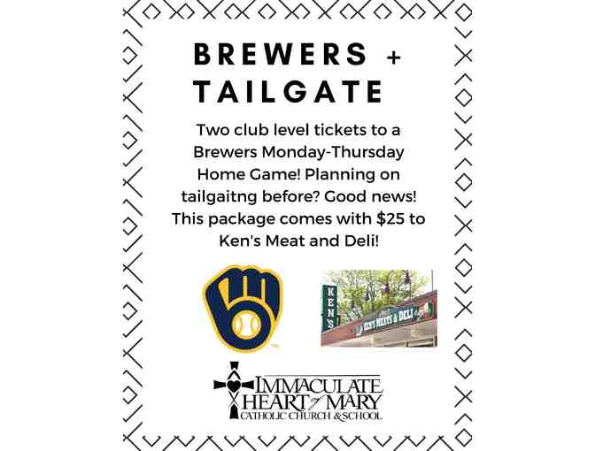 Two (2) Club Level Tickets to a Monday-Thursday MIlwaukee Brewers home game + $25 Ken's Meat and Deli Gift Card